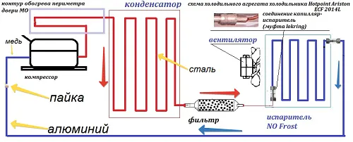 Продукты в холодильнике охлаждаются циркулирующим по камерам холодным воздухом, охлаждённым при прохождении через испаритель. Испаритель представляет из себя радиатор и располагается за панелью задней стенки морозильной камеры. За испарителем устанавливается вентилятор, который прогоняет воздух морозильной и холодильной камер через испаритель. При прохождении через испаритель воздух охлаждается направляется на продукты. Основная часть охлаждённого воздуха поступает в морозильную камеру, меньшая - по дополнительному каналу в холодильную. В конструкции холодильника Hotpoint-Ariston HF 4200 W реализовано многопоточное охлаждение холодильной камеры – на продукты воздействуют воздушные потоки, направленные с разных сторон. Кроме того, за счет оптимального распределения холодного воздуха по камере, продукты охлаждаются очень быстро. Отдельно имеется режим «Суперзамораживание», благодаря которому можно очень быстро заморозить большой объем провизии с сохранением вкусовых свойств. отделения