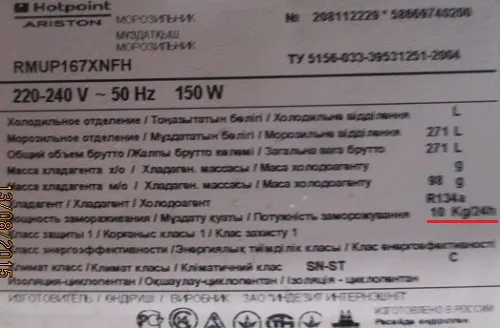 на эту же модель производитель указывает данные по мощности замораживания - 10 кг/сутки